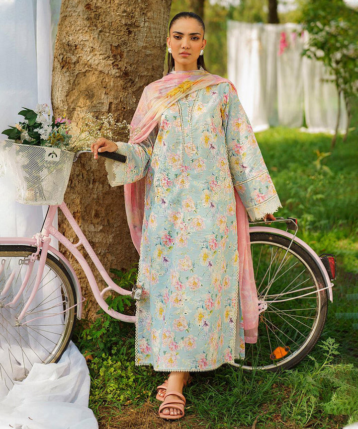 3PC-Printed Lawn Shirt With Voile Printed Dupatta-1548