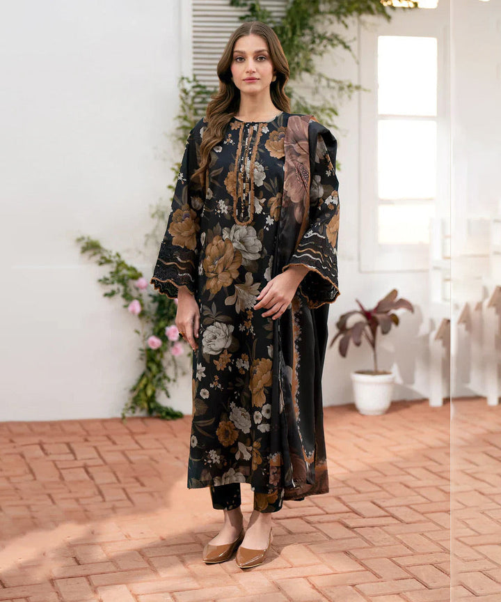 BAROQUE - 3PC Lawn Printed Shirt With Voile Printed Dupatta-1506