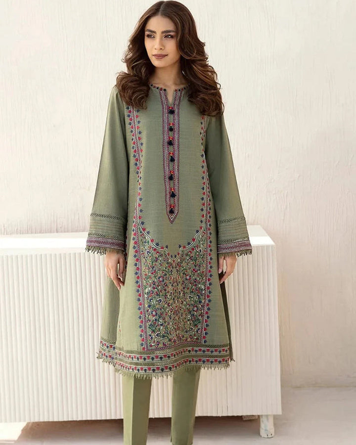Dhanak 3PC Embroidered Shirt With Dhanak Plain Dupatta-1290