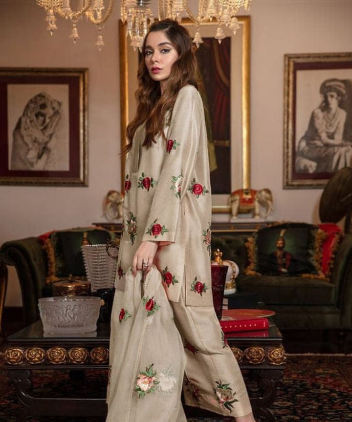 Silk 3PC Embroidered With Organza Embroidered Dupatta-1316